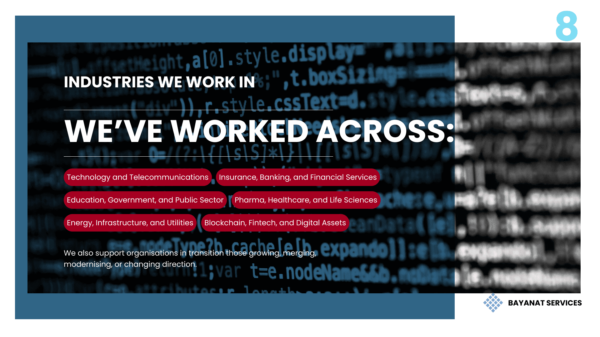 This system allows Bayanat to communicate its expertise clearly across marketing, proposals, and consulting documentation.